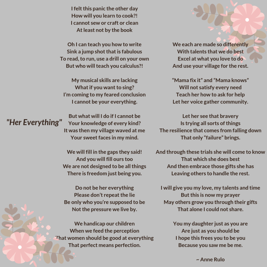 PS – In this same vein, here is a poem I wrote years ago. Thanks to all those in the village helping raise my kiddos. I am grateful for you.